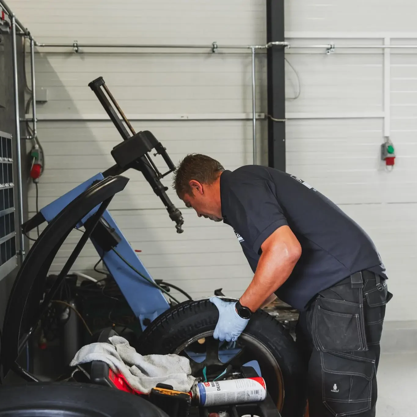 Vi tilbyder at opbevare dine dæk mellem dækskiftene. På den måde er du sikker på at dine dæk er opmagasineret tørt og sikkert. Og du skal ikke have besvær med at fragte dækkene mellem hvert dækskifte.